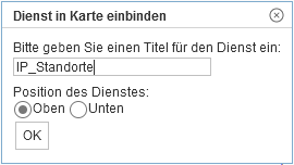 Vor dem Hinzufügen des Kartendienstes zur Karte erscheint noch der Dialog "Dienst in Karte einbinden". Hier können Sie den Titel und die Position des Dienstes bestimmen: